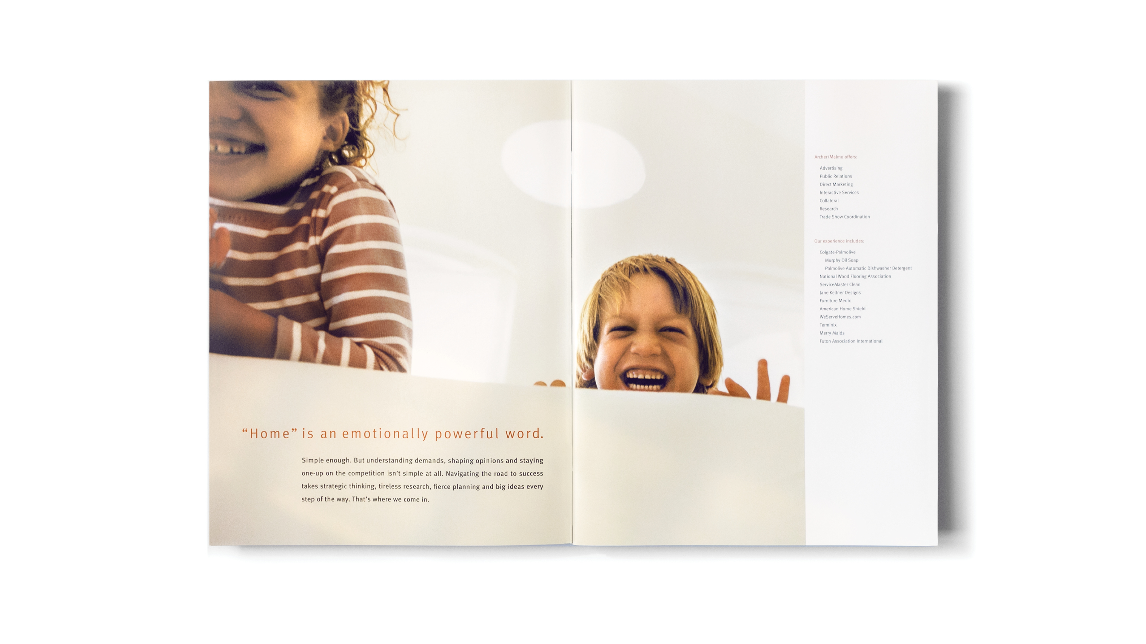 Provided creative leadership and design direction to develop branded marketing materials that showcased Archer Malmo’s portfolio of work—positioning the agency as a leader in marketing to the Home category by blending style, aesthetic, and purposeful brand design to reflect its expertise.
